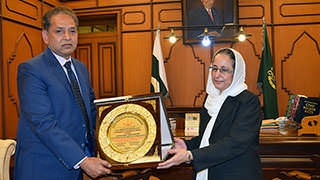 عزت مآب چیف جسٹس عدالت عالیہ بلوچستان شیلڈ اور تحفہ وصول کرتے ہوئے۔